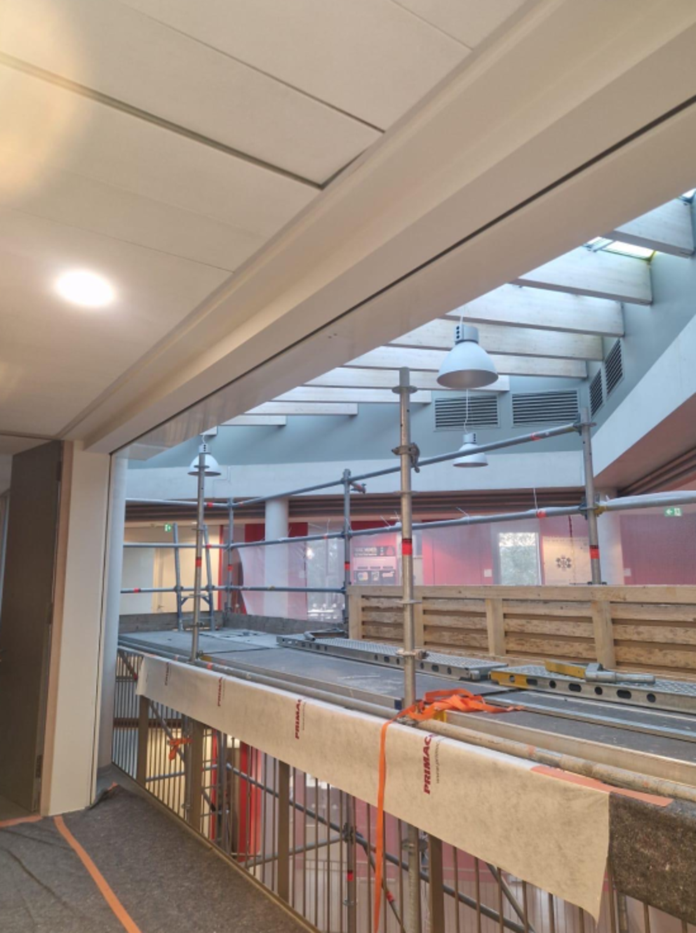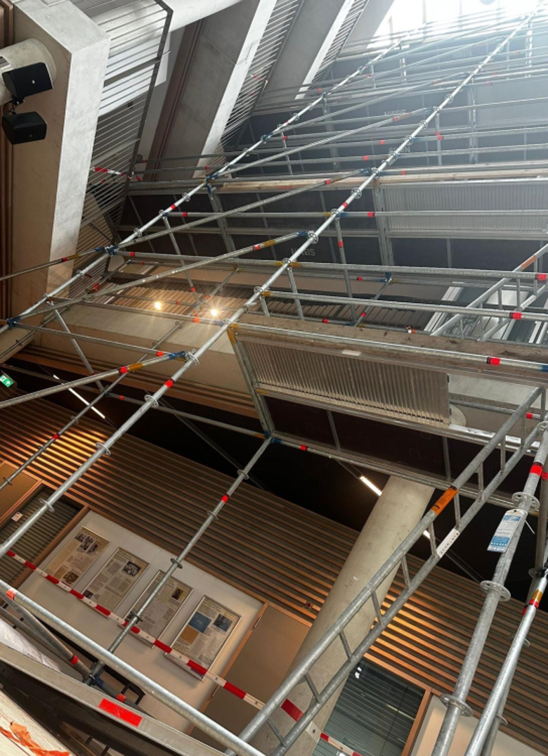 Met de nieuwe brandschermen voldoet het CWI weer volledig aan de brandveiligheidseisen. “De schermen passen perfect bij de architectuur van het gebouw,” vertelt Lex. “Het is netjes uitgevoerd en we zijn weer helemaal beschermd. De afbouw van de steigers ging soepel en het eindresultaat mag er zijn.”