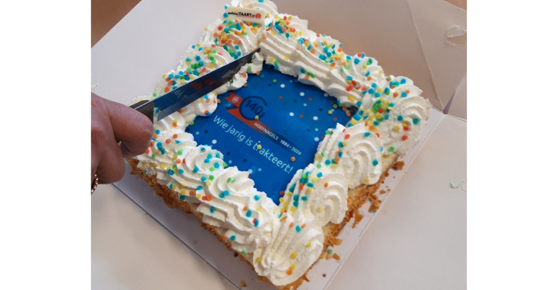 Daarom schreven we eerder dit jaar in een nieuwsbrief een actie uit: Win een Hoefnagels-taart.